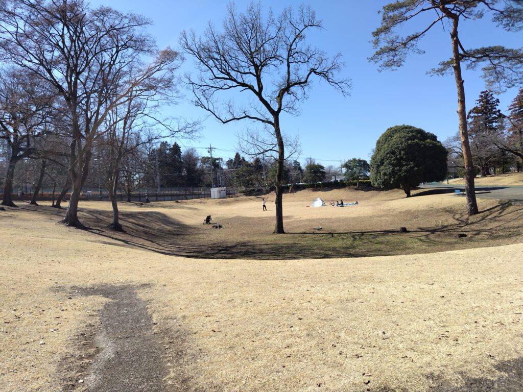 狭山稲荷山公園は16.5haの広さを持ち、芝生でのんびり過ごしたり、ランニングを楽しんだりできるスポットです。