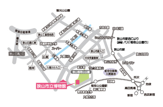西武新宿線「狭山市駅」 西口から西武バス「稲荷山公園駅」行き。終点下車、徒歩3分。