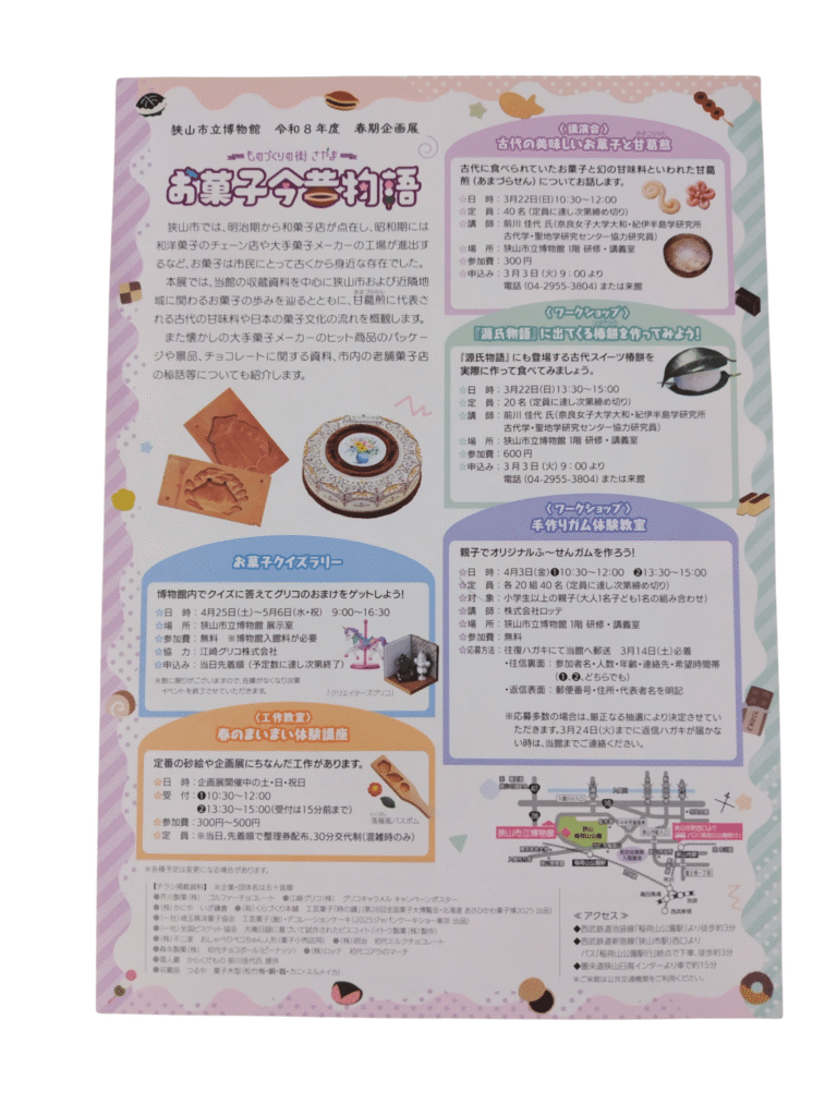 今回のイベントはみんなが大好きなお菓子!大人も子供も楽しめる狭山市立博物館へ、ぜひ行ってみてくださいね。